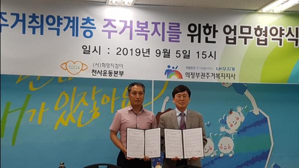 희망지킴이 천사운동본부는 지난 5일 LH한국토지주택공사 의정부권 주거복지 지사와 업무 협약을 체결했다.