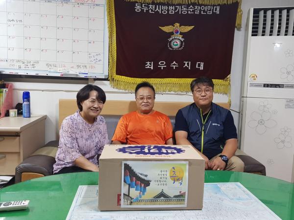 동두천시 보산동 행정복지센터는 지난 5일 보산동 관광특구 내 태풍 자율방범지대를 방문하여 위문하고 위문품을 전달했다.
