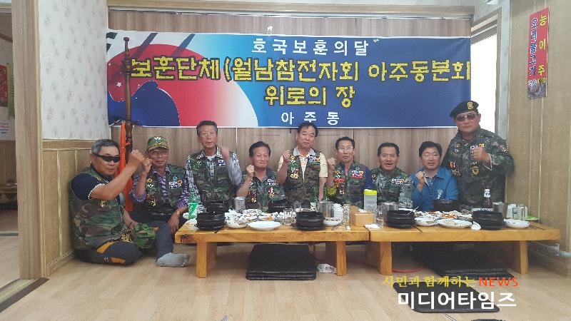| 3일, 아주동 월남참전전우회원들을 위한 격려 간담회를 개최하고 기념사진을 찍고있다. |