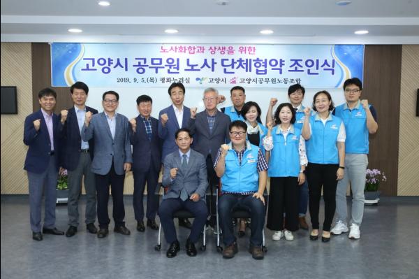 고양시는 고양시공무원노동조합과 지난 5일 오전 시청 평화누리실에서 ‘2019년도 고양시공무원노동조합 단체협약 조인식’을 가졌다.