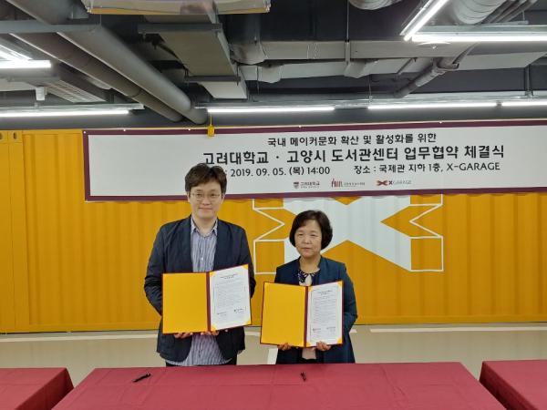 고양시 도서관센터는 지난 5일 고려대 KU 개척마을과 지역 내 메이커문화 확산과 활성화를 위해 업무협약을 체결했다..