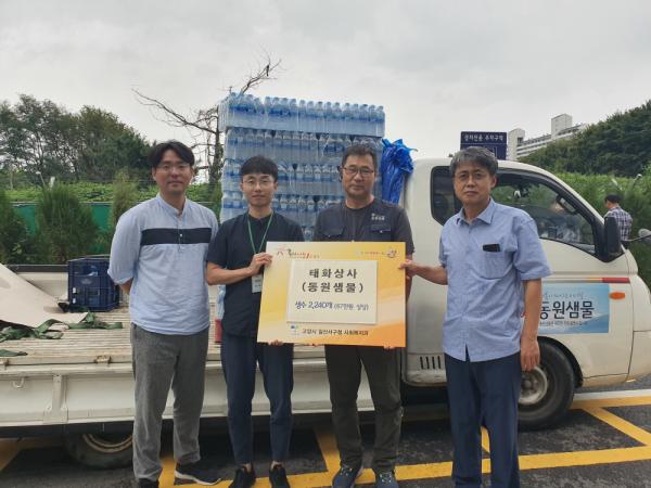 이번 사랑의 생수 나눔은 관내 저소득층 및 소외계층의 건강한 생활과 더불어 사는 사회 조성을 위해 관내에 위치한 기업인 태화상사 동원샘물 측의 자발적인 후원 참여로 이루어졌다.