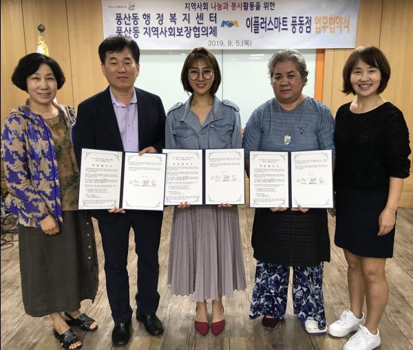 고양시 일산동구 풍산동 지역사회보장협의체는 지난 5일 이플러스마트 풍동점과 지역사회 나눔 및 봉사활동을 위한 업무협약을 체결했다.