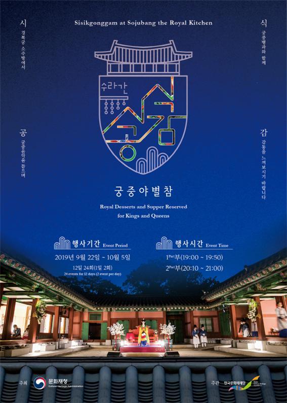 문화재청 궁능유적본부가 주최하고, 한국문화재재단이 주관하는 2019년 하반기 ‘수라간 시식공감’이 오는 22일부터 10월 5일까지 경복궁 소주방에서 1일 2회씩 총 24회 진행된다.