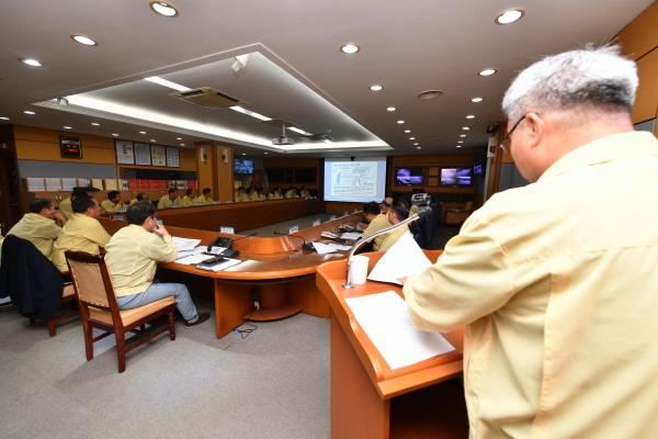 정동균 군수 주재로 진행한 이날 회의에는 태풍 대비 13개 협업 관련부서 및 12개 읍·면의 태풍 대비 대처상황을 점검하고, 피해 최소화를 위한 선제적 대처방안을 모색했다.