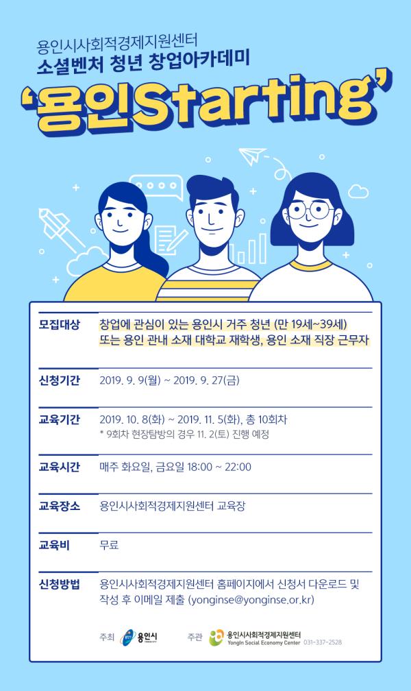 용인시는 사회문제 해결을 목적으로 창업을 하려는 청년 기업가 양성을 위해 개설한 ‘소설벤처 청년 창업아카데미’ 교육생 30명을 오는 27일까지 모집한다.