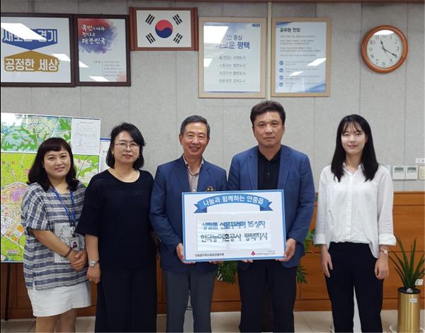 한국농어촌공사 평택지사는 6일 추석을 맞아 안중읍 행정복지센터를 방문하여 경제적 어려움을 겪고 있는 관내 소외계층을 위한‘사랑의 생필품꾸러미’전달식을 가졌다.