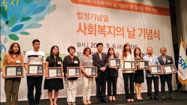 김원기 부의장은 이날 오후 의정부시 아일랜드캐슬 2층 그랜드볼룸에서 열린 행사에서 사회복지사, 봉사자 등 경기도 사회복지 발전에 기여한 10명을 선정해 경기도의회 의장 표창을 수여했다.