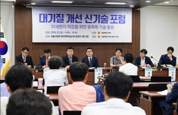 최근 대기질 오염 가운데 미세먼지에 대한 심각성이 크게 문제가 되고 있는 가운데, 서울특별시의회 환경수자원위원회 김광수 의원은 4일 서울시의회의원회관 제2대회의실에서 ‘대기질 개선 신기술 포럼’을 개최하고, 미세먼지 저감을 위한 광촉매 기술 활용과 향후 전망을 논의하는 자리를 가졌다.