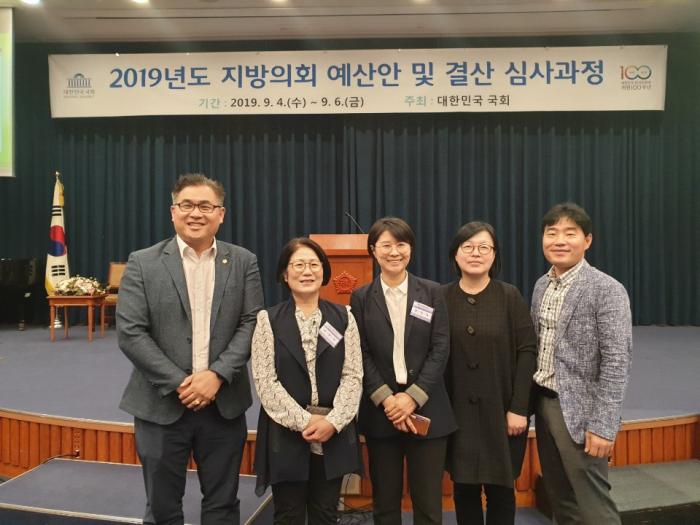 이번 교육은 9월 17일에 열리는 제234회 임시회와 11월 25일 열리는 제236회 정례회에서 다룰 2019년 제2회 추가경정예산안 및 2020년 본예산 심사에 앞서 의원들의 역량을 강화하기 위해 마련됐으며, 김보경·김운남·문재호·엄성은·장상화 의원이 참석했다.