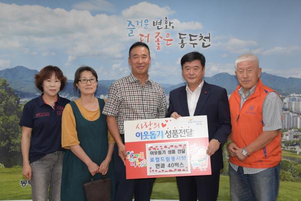 동두천시 로컬드림봉사회에서 지난 5일 추석 명절을 앞두고, 지역사회에서 명절을 홀로 지내시는 독거노인들을 지원하기 위해 한과 40박스를 동두천시에 기탁했다