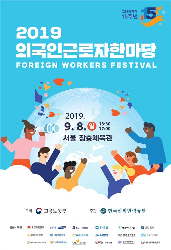 고용노동부와 한국산업인력공단은 지난 8일부터 9일까지 양일 간, 서울 중구 일대에서 16개 송출국 주한대사관 관계자 및 외국인근로자 등 1,200여명이 참석해 ‘고용허가제 시행 15주년’기념행사를 개최한다.