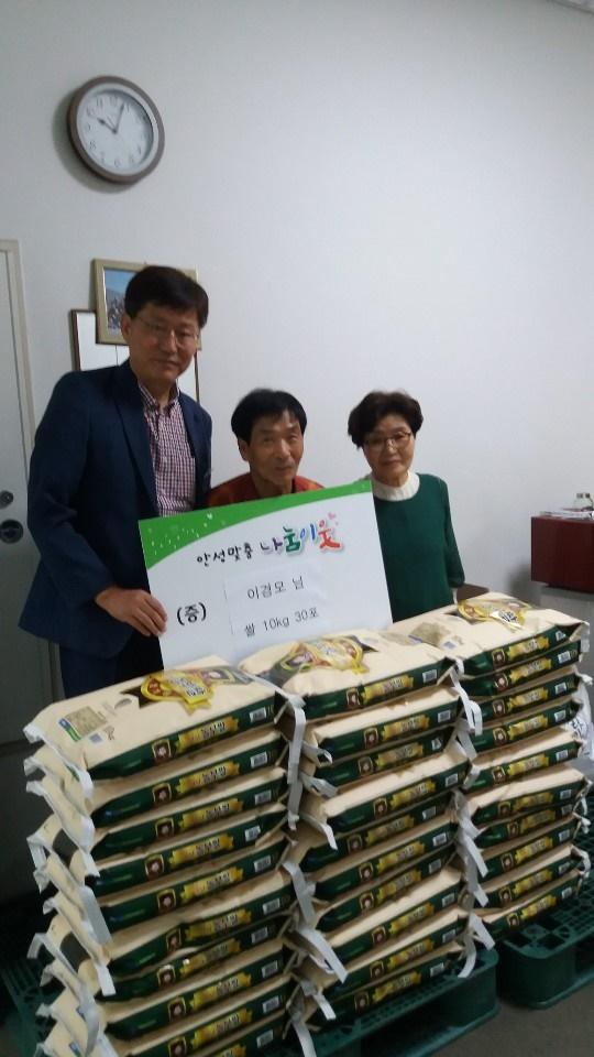 안성시 공도읍에 거주하는 이경모 할아버지는 9일 공도읍행정복지센터를 방문하여 추석명절에 어려운 이웃들에게 전해 달라며 쌀 10kg 30포를 기부했다.