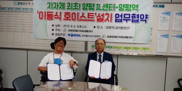 양평장애인자립생활센터와 양평역은 지난 6일 양평역에서 장애인의 편의증진을 위한 이동식 호이스트 설치 업무협약을 체결했다.