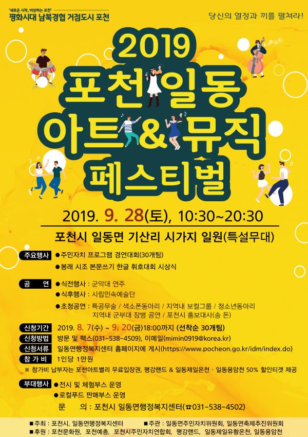 포천시는 오는 28일 일동면 기산리 길거리 특설무대에서 '2019 포천 일동 아트&뮤직 페스티벌'을 개최한다.