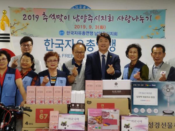 매년 명절마다 이웃사랑을 실천하고 있는 자유총연맹 남양주시지회는 생활고로 어려움을 겪는 가정과 홀로 계시는 어르신 등 쓸쓸한 명절을 보내는 이웃에게 찾아가 한가위를 따뜻하게 지낼 수 있도록 100여점의 선물꾸러미를 전달했다.