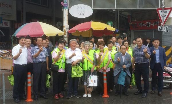 이날 우 시장은 장보기 행사와 함께 상가를 일일이 돌며 매출감소로 어려움을 겪고 있는 상인들의 애로사항을 청취했다.