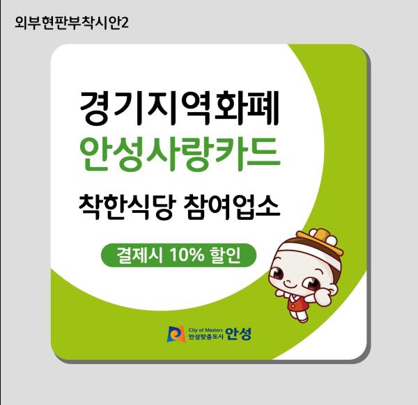 안성시 ‘착한식당’ 지정업소에서 경기지역화폐 안성사랑카드로 결제하면 10%를 할인받을 수 있다.