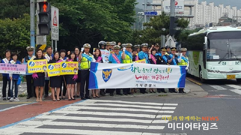 [미디어타임즈 = 최귀복 기자] 거제경찰서(서장 김영일)는 지난 9일, 거제시 고현동 한전 앞 교차로, 시외버스터미널 앞 교차로에서 교통문화 바로세우기 교통안전캠페인을 실시했다.