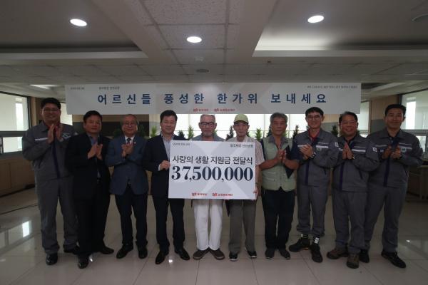 인천 동구와 동국제강은 9일, 동국제강 인천제강소에서 우리의 고유명절 추석을 앞두고 관내 어르신들을 위한 사랑의 생활지원금 전달식을 가졌다.