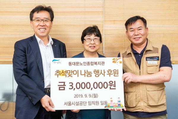 서울시설공단은 9일 추석 명절을 앞두고 지역사회 저소득층 어르신들을 위한 나눔행사를 지원하고, 임직원 기부금 300만원을 동대문 노인종합복지관에 전달했다고 10일 밝혔다.