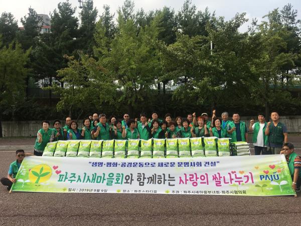 파주시 새마을부녀회는 지난 9일 파주스타디움에서 추석을 앞두고 주변의 어려운 이웃들과 훈훈한 정을 나누기 위해 ‘사랑의 쌀 나누기’ 행사를 개최했다.