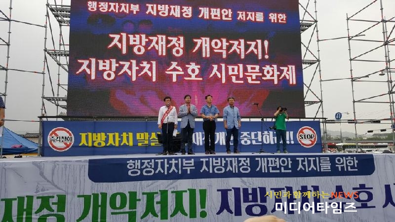 | 11일 오후 3시 서울광화문 광장에서 ‘지방재정 개악저지와 지방자치 수호’ 시민문화제 모습. |