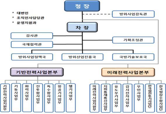 조직 개편의 주요 내용을 살펴보면 기존 1개의 사업관리본부를 방위사업 여건 변화에 부합하도록 2개의 사업본부로 확대 재편성했다.
