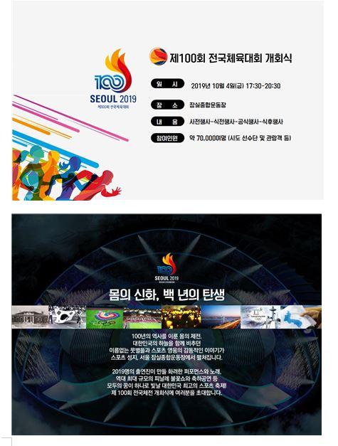 주용태 관광체육국장은 “대한민국 최고의 예술가와 공연예술 전문가들이 全 세대가 공감할 수 있는 개회식 연출에 심혈을 기울이고 있다. 그런 만큼 제100회 전국체육대회, 제39회 전국장애인체육대회 개폐회식은 이전 대회와는 모든 면에서 차원을 달리 한다, 지켜보시는 분들의 뇌리에 남을 흡족한 행사가 될 것으로 자신한다. 많은 분들이 현장에서 함께 해주시길 바란다.” 고 말했다.