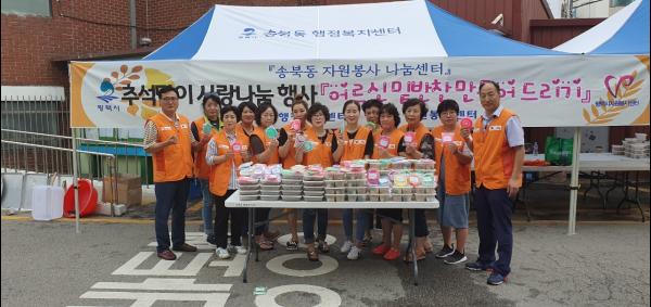 평택시 송북동 자원봉사나눔센터는 10일 송북동 행정복지센터 주차장에서 ‘어르신과 함께하는 추석맞이 사랑나눔 행사’를 실시했다.
