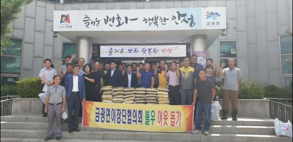 안성시 금광면축제위원회가 10일 관내 소외계층을 위해 이웃돕기 물품 쌀20kg·34포를 금광면사무소에 기탁한데 이어 금광면이장단협의회는 관내 저소득계층을 위해 이웃돕기 물품 쌀10kg · 60포를 마련했다.