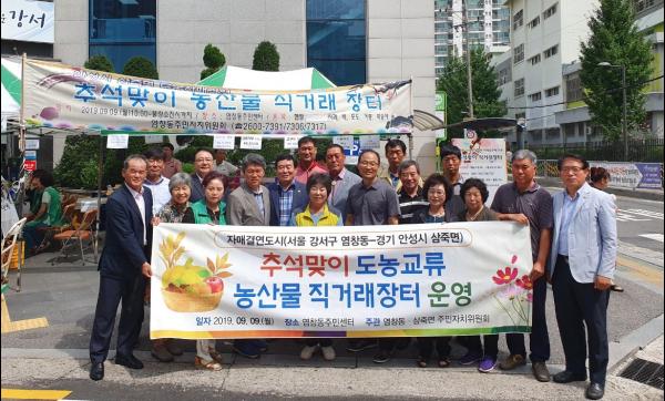 안성시 삼죽면 주민자치위원회는 지난 9일 자매결연도시인 서울 강서구 염창동 주민센터에서 추석맞이 농산물 직거래장터를 운영했다.