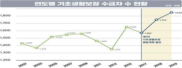특히, 2017년 제1차 기초생활보장 종합계획을 발표하고 지난 2년간, 급여별 보장성을 강화하고 부양의무자 기준 단계적 폐지를 시행하여 비수급빈곤층 43만 명을 새로 지원했다.