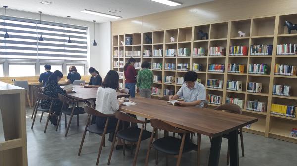 청계종합사회복지관 3층에 위치한 청계숲고운도서관은 기존의 커뮤니티카페와 청소년공부방을 통합하여 안락한 북카페 분위기를 갖춘 작은도서관으로 새롭게 탈바꿈했다.