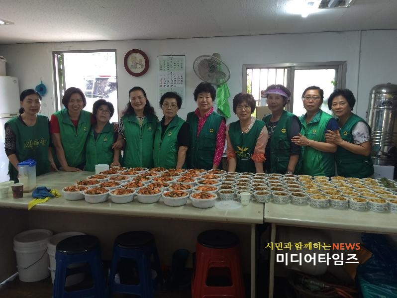 [미디어타임즈= 이영희 기자]안산시 반월동 새마을부녀회(회장 황이순)는 지난 6월 9일 동 주민센터 주차장에서 회원들이 참여해 정성스럽게 만든 반찬을 독거 어르신 30명과 나누었다.