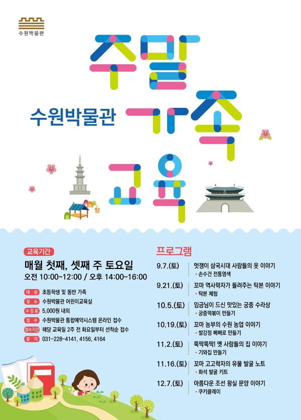 수원박물관이 9월부터 오는 12월까지 어린이와 동반 가족을 대상으로 ‘2019 하반기 주말 가족교육 프로그램’을 운영한다.