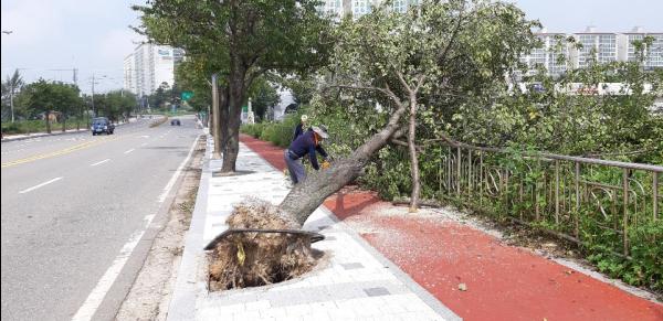 이번 태풍은 강풍으로 인한 수목피해가 대부분으로 교통흐름에 방해가 되는 도로변 뽑혀진 가로수와 등산로로 도복된 수목 등 위급상황에 따라 신속히 긴급복구를 진행하고 있으며 지속적인 순찰과 신고접수 등을 통해 미처리 현장에 대해서도 순차적으로 처리할 계획이다.