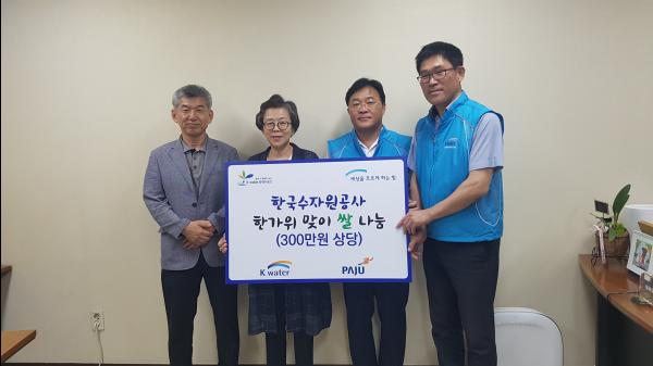 한국수자원공사는 추석을 맞아 파주시에 거주하는 소외이웃을 대상으로 300만원 상당의 쌀을 기부했다.