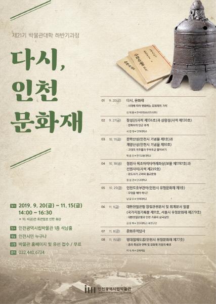 인천광역시립박물관에서는 이처럼 ‘보호해야 할 것’으로 박제되었거나 ‘한 번 가볼만한 곳’으로 치부되고 있는 문화재에 대한 인식을 일깨우고, 그것을 통해 인천의 역사와 문화를 다시금 이해하는 자리를 마련했다. 올해로 제21기를 맞이한 성인대상 강좌 ‘박물관대학’의 하반기 과정 ‘다시, 인천 문화재’이다.