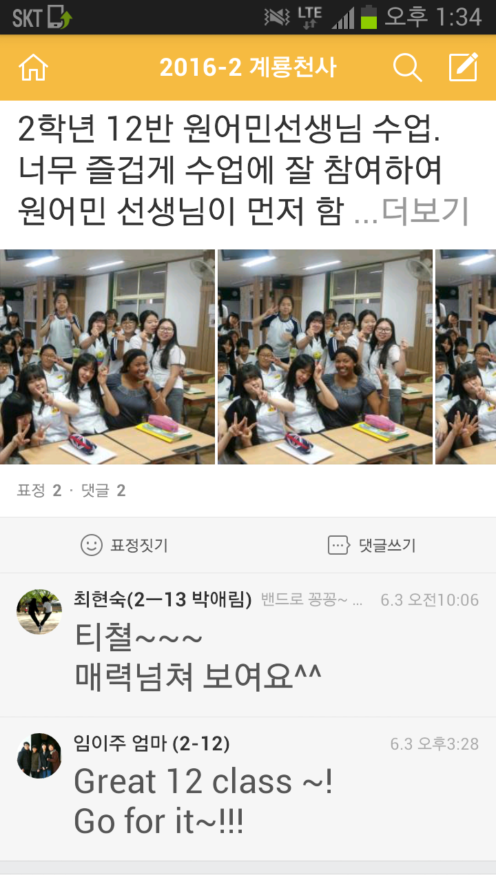 [미디어타임즈 = 최귀복 기자] 거제 계룡중학교(교장 손정충)에서는 2016학년도 3월 초부터 전교생 학부모들을 대상으로 모바일 상의 학년별 밴드(BAND)를 만들어 학교의 다양한 소식 및 학생들의 학교생활을 실시간으로 안내하면서 학부모들로부터 큰 호응을 보이고 있다.
