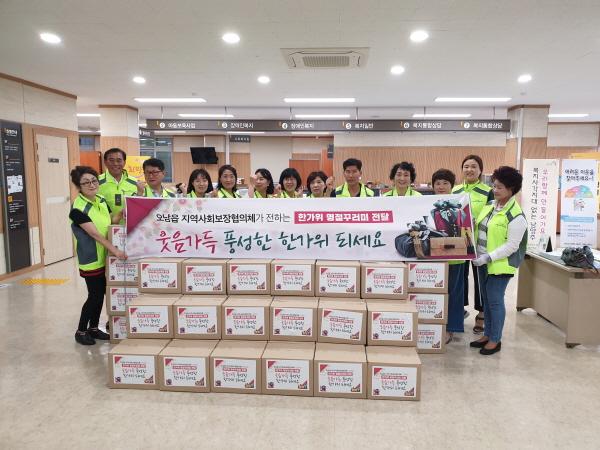 남양주시 오남읍 지역사회보장협의체는 지난 10일 한가위를 맞아 취약계층 70가구에 송편, 전, 한과, 사골곰탕이 담긴 명절꾸러미를 전달했다.