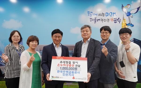 연수구는 한국주택금융공사 인천지사로부터 지난 10일 인천사회복지공동모금회를 통해 관내 저소득계층 지원을 위한 추석 명절맞이 온누리상품권 100만원 상당을 기탁 받았다.