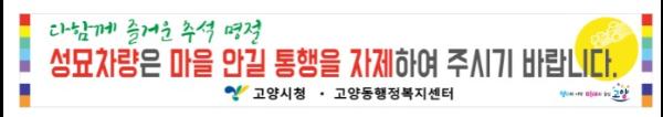 이재준 고양시장은 “매년 연례행사로 교통지옥 명절을 맞고 있는 고양동 지역주민들의 고통을 이해하고, 조금씩 양보해 모두가 행복한 추석연휴가 될 수 있으면 좋겠다”며, 성묘객들의 양해와 협조를 구했다.