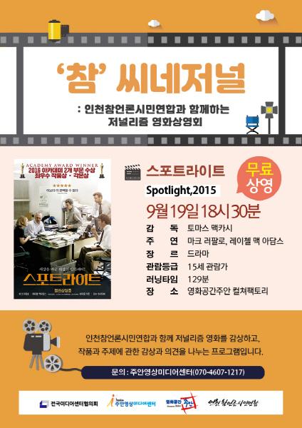 영화 스포트라이트 상영 후에는 인천참언론시민연합에서 영화 해설과 토론을 통해 언론의 기능과 역할을 생각해보는 시간을 준비할 예정이다.