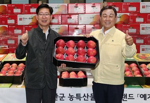 예산군 농산물 유통센터로 자리를 옮긴 양 지사는 사과 선별 작업자와 시설 현황을 점검하고, 사과 판로 확보를 위한 다양한 의견을 공유했다.