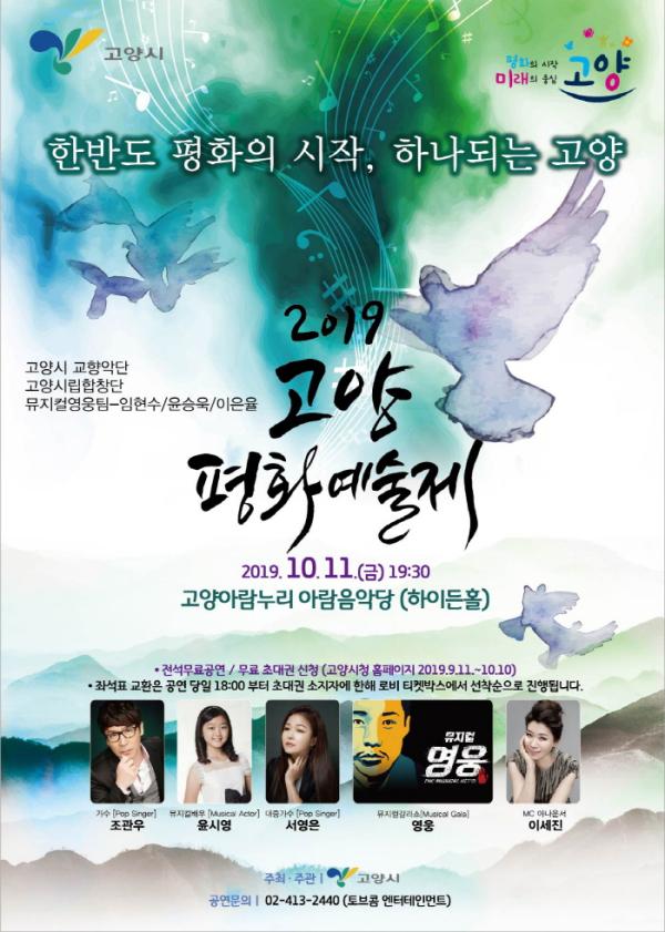 고양시가 오는 10월 11일 오후 7시 30분에 고양시 아람누리 아람극장 음악당에서 평화와 통일에 대한 시민 공감대 형성을 위한 고양평화예술제를 무료 공연으로 개최한다.