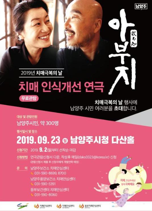 남양주시청 다산홀에서 치매인식개선 연극 아부지 공연 등 다채로운 행사 진행