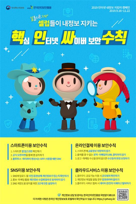 ‘2019 인터넷 내정보 지킴이 캠페인’행사에 대한 자세한 사항은 ‘온라인 개인정보보호 포털’에서 확인할 수 있다.
