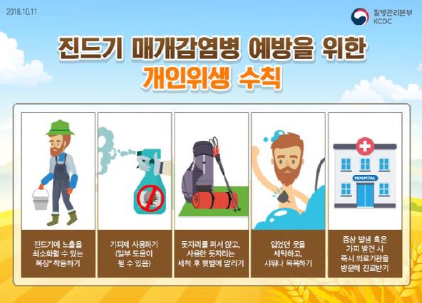 아울러, 진드기매개감염병 예방을 위한 야외활동 및 농작업 전 · 중 · 후 위생수칙을 세분하여 그 준수를 다시 한 번 당부했다.