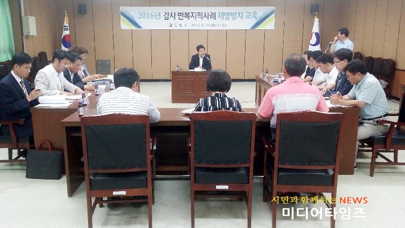 [미디어타임즈 = 최귀복 기자] 통영시(시장 김동진)는 지난 14일 11:00, 시청 회의실에서 읍ㆍ면ㆍ동 행정민원 담당주사를 대상으로 『2016 감사 반복지적사례 재발방지 교육』을 실시했다.